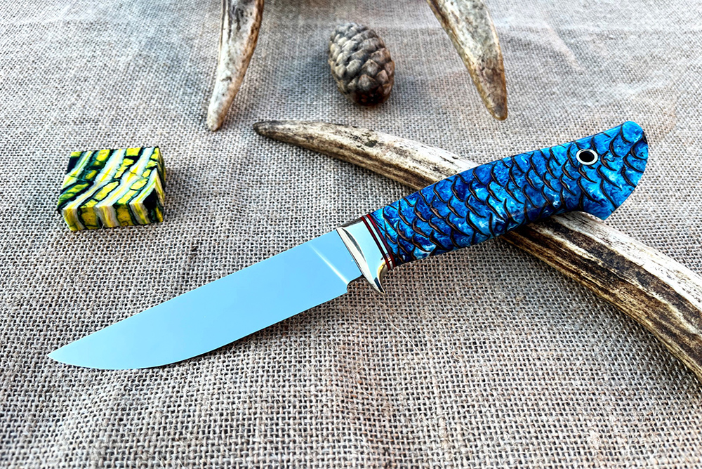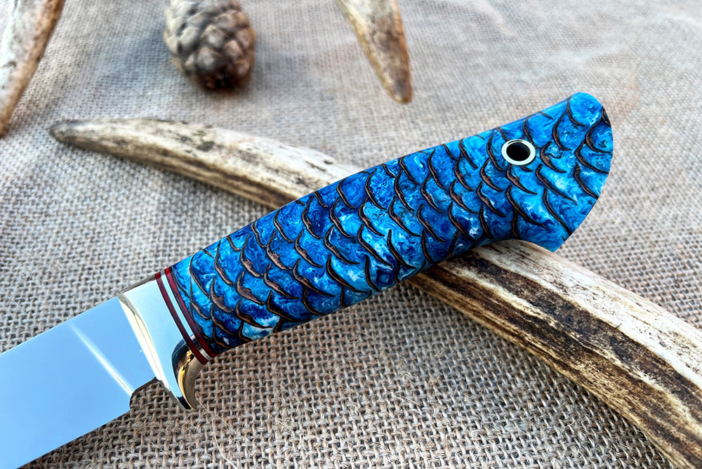 Нож "леший" сталь х12мф, рукоять шишка в акриле