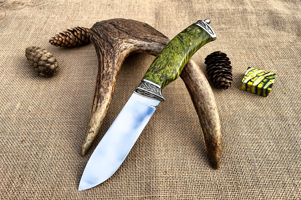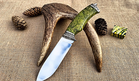 Главная » Каталог » Ножи из кованой стали Х12МФ » Нож "Тайга" клинок х12мф, рукоять стабилизированный кап клена, мельхиор