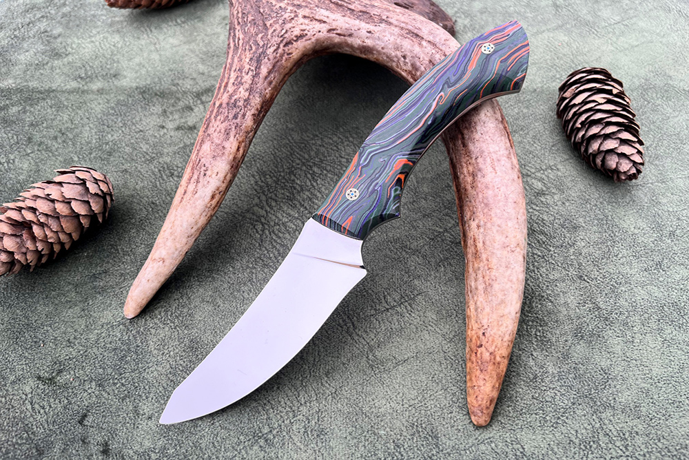 Главная » Каталог » Ножи из кованой стали Х12МФ » Нож "Тунец" из стали х12мф, рукоять накладки из авторской микарты, мозаичные пины