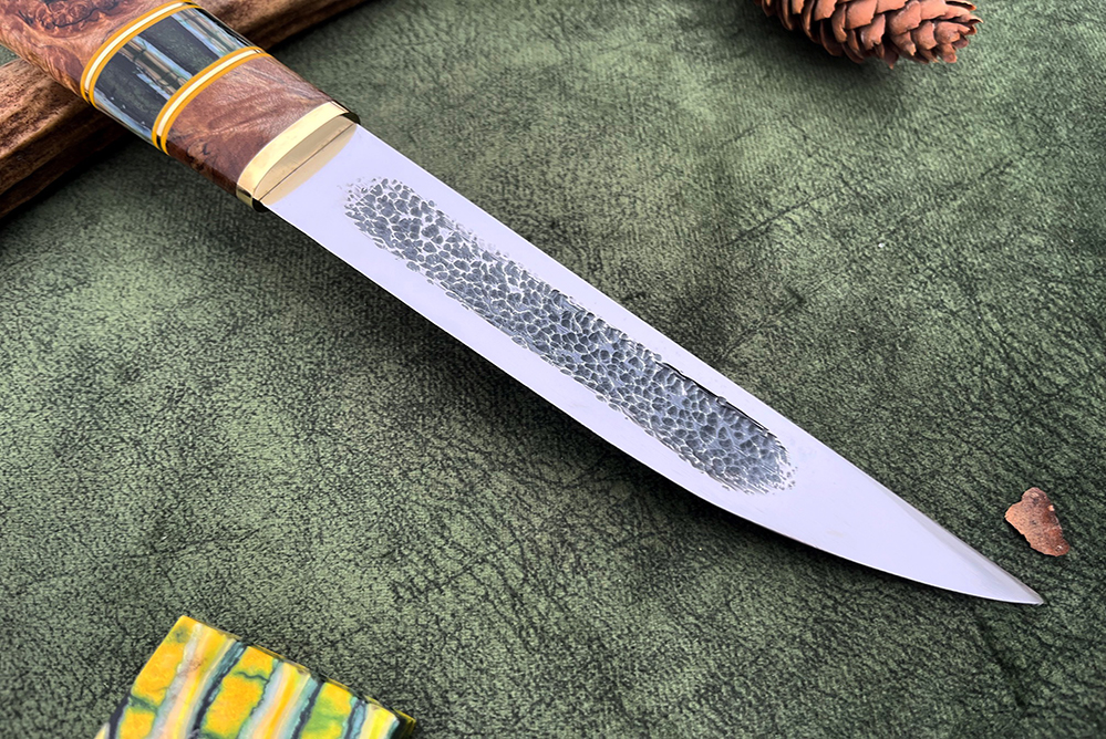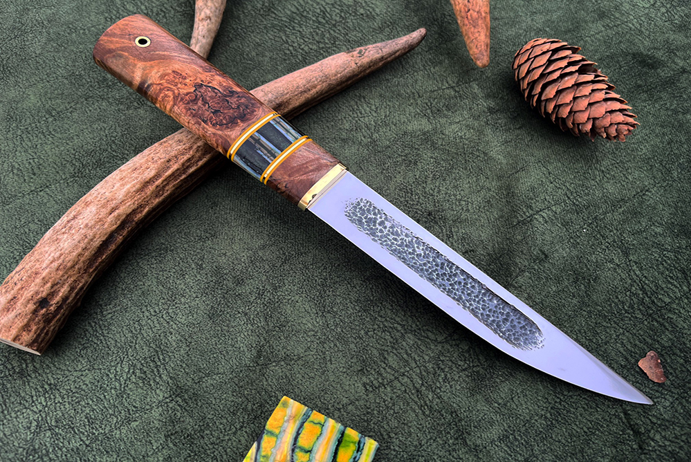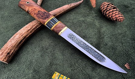 Главная » Каталог » Ножи из кованой стали Х12МФ » Сталь х12мф, рукоять стабилизированный кап клена, вставка зуб мамонта