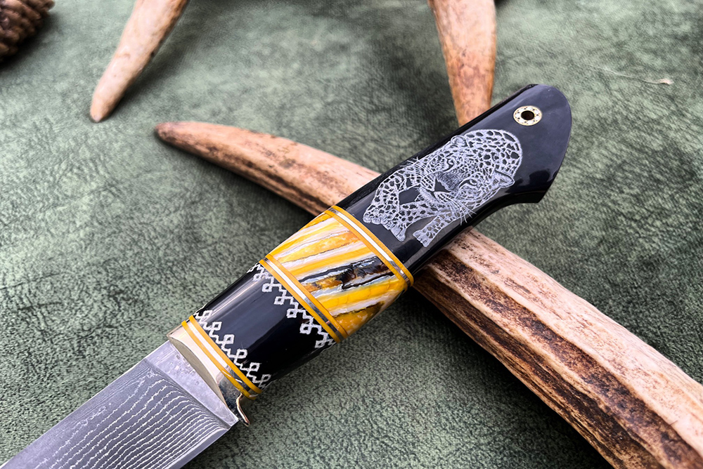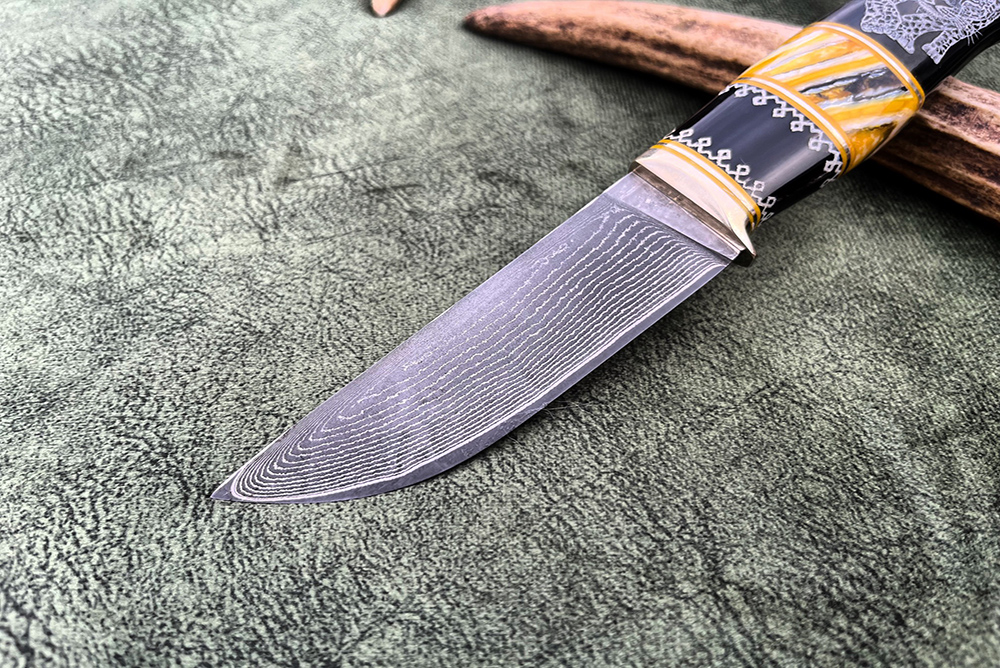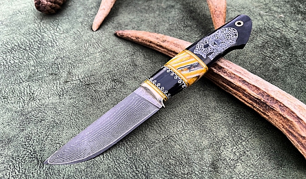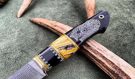 Главная » Каталог » Ножи из стали S390 » Нож "Мангуст" сталь s390, рукоять рог буйвола, зуб мамонта, скримшоу
