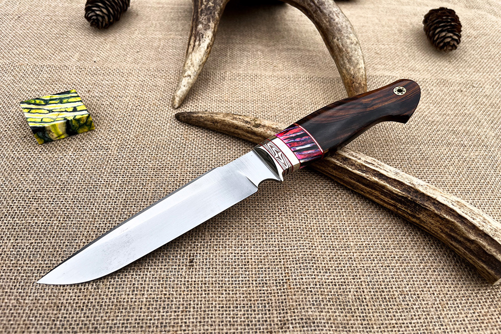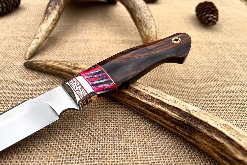 Нож "охотник" сталь s390, рукоять ironwood, макуме, зуб мамонта