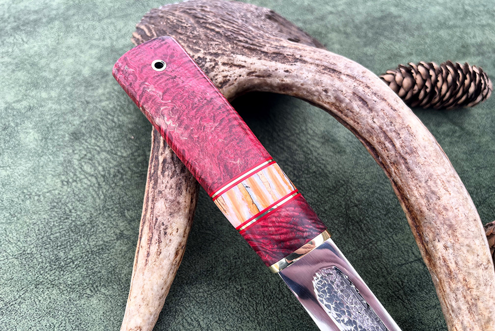 Сталь х12мф, рукоять стабилизированный кап клена, вставка зуб мамонта